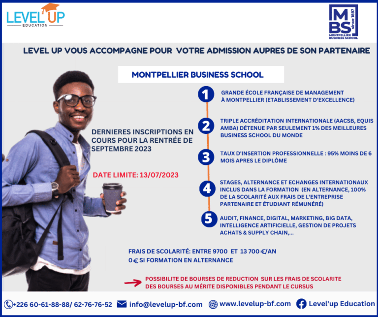 Dernières inscriptions en cours auprès de notre Grande Ecole Française partenaire: 𝗠𝗼𝗻𝘁𝗽𝗲𝗹𝗹𝗶𝗲𝗿 𝗕𝘂𝘀𝗶𝗻𝗲𝘀𝘀 𝗦𝗰𝗵𝗼𝗼𝗹. Membre de la Conférence des Grandes Ecoles Françaises Accréditation internationale AACSB: détenue par seulement 5% des meilleures Business School du monde
